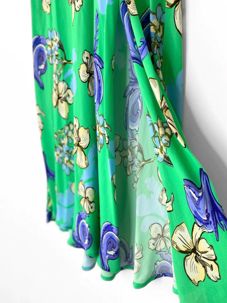 Falda midi estampada con tajo. Acceso con cierre invisible.